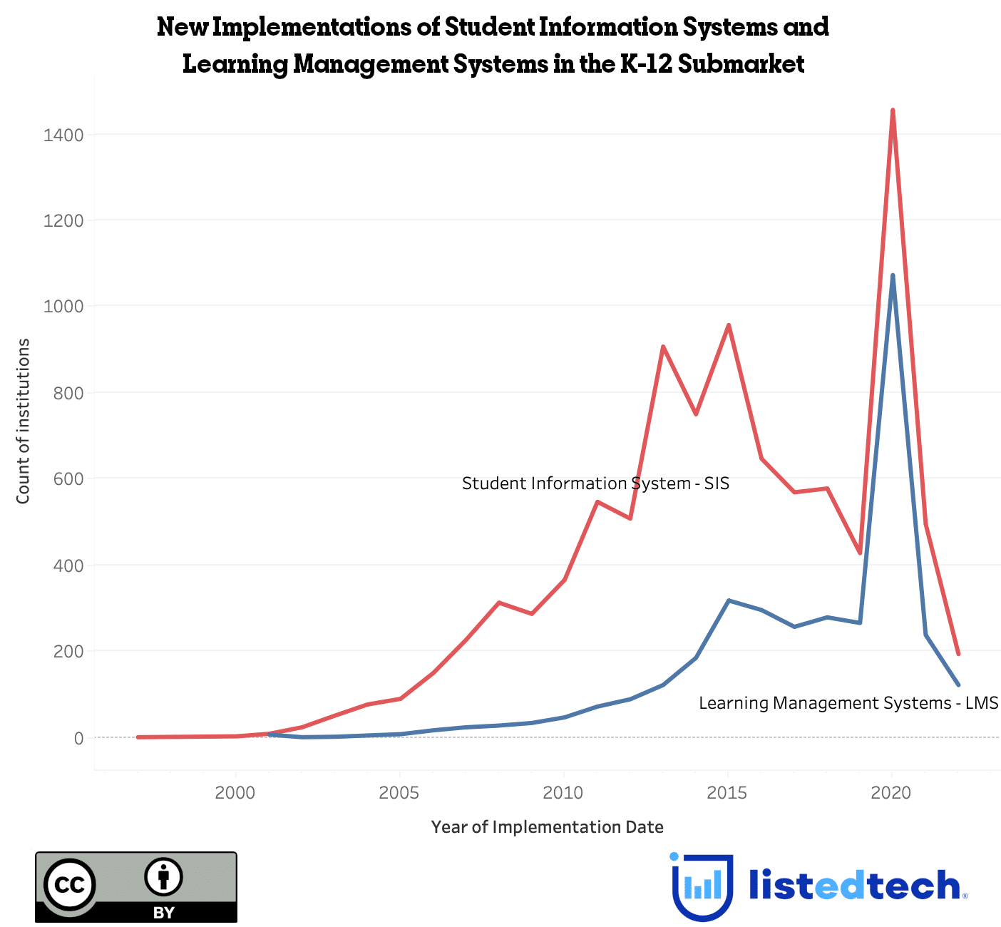 As part of our regular operations, we take time to do quality control and to explore our database. When we see uncommon trends, we dig down into them to better understand what can cause these differences. In this post, we would like to dig into our dataset to explore why we have such a big difference in our numbers for K-12 learning management systems (LMS) and student information systems (SIS). During phone conversations, some clients questioned the difference between the two systems. After all, we do have similar numbers in the HigherEd submarket (have a look at Table 1). Why is K-12 so disparate?